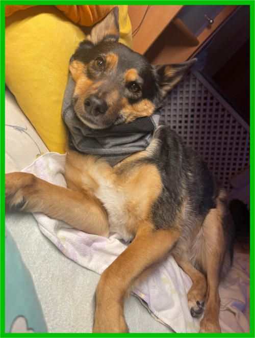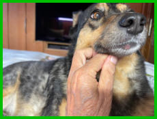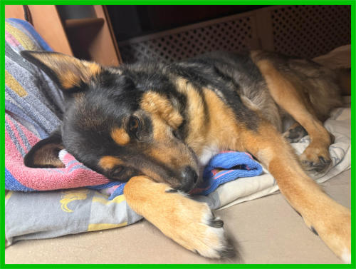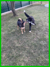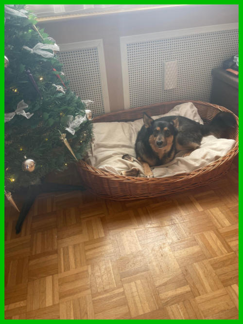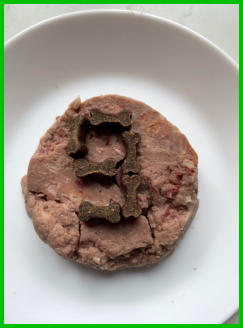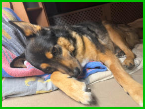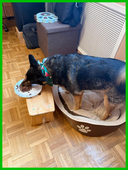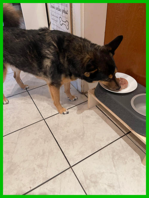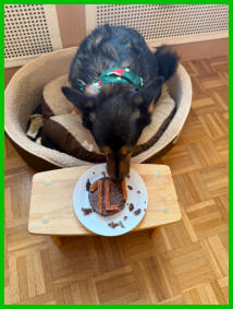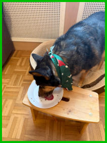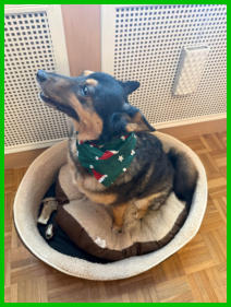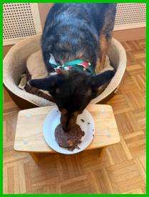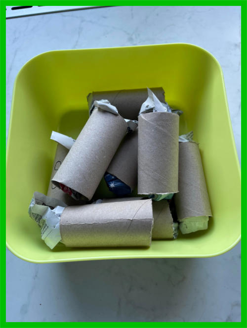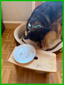 Ab und zu spielt mein Herrl mit mir das Leckerliesuchspiel. Hühnerbruststücke in Klorollen versteckt.